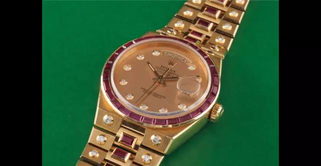 劳力士曾经做过很多这样的高宝石表,特点是在链带上镶嵌上足够大粒的钻石。从外表看好像八爪鱼的吸盘一样,吸盘很恶心,但钻石却应当别论。尤其是元首带,两旁是大颗的圆钻石,中间则是长方形的钻石或宝石,实在是很奢华,我自己从来没有戴过这样的表,不知道是什么感觉。