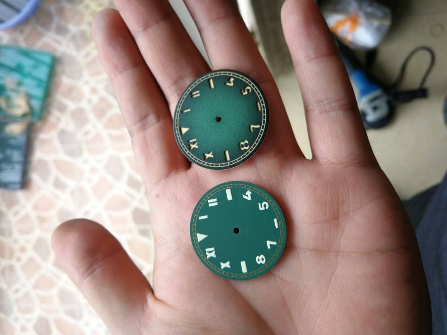 表面工艺介绍,根据自己理解全部手打,不足之处欢迎指正,欢迎表友交流,表面的工艺在整个手表中也算尤为重要的一个环节,一个成品表面也需要数个工厂配合。胚厂、铜板(或特殊材料)、磨具厂(logo模和字钉模)、油漆、UP厂、夜光、包装等,拿我做的一款字面举例。