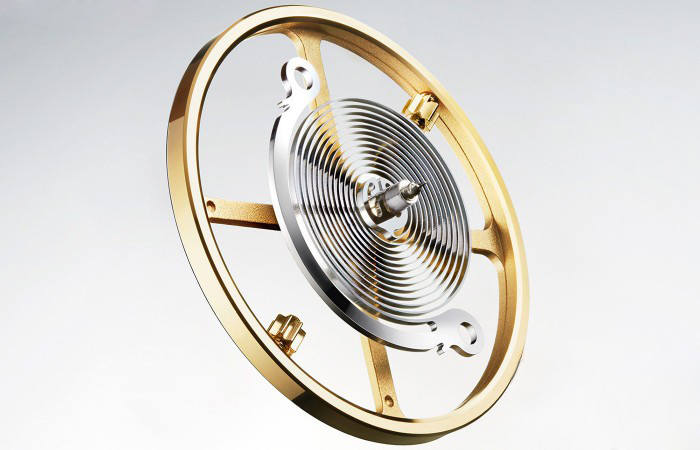劳力士新型Syloxi硅游丝,请注意游丝两边的小洞,两个小洞是用来固定游丝的。