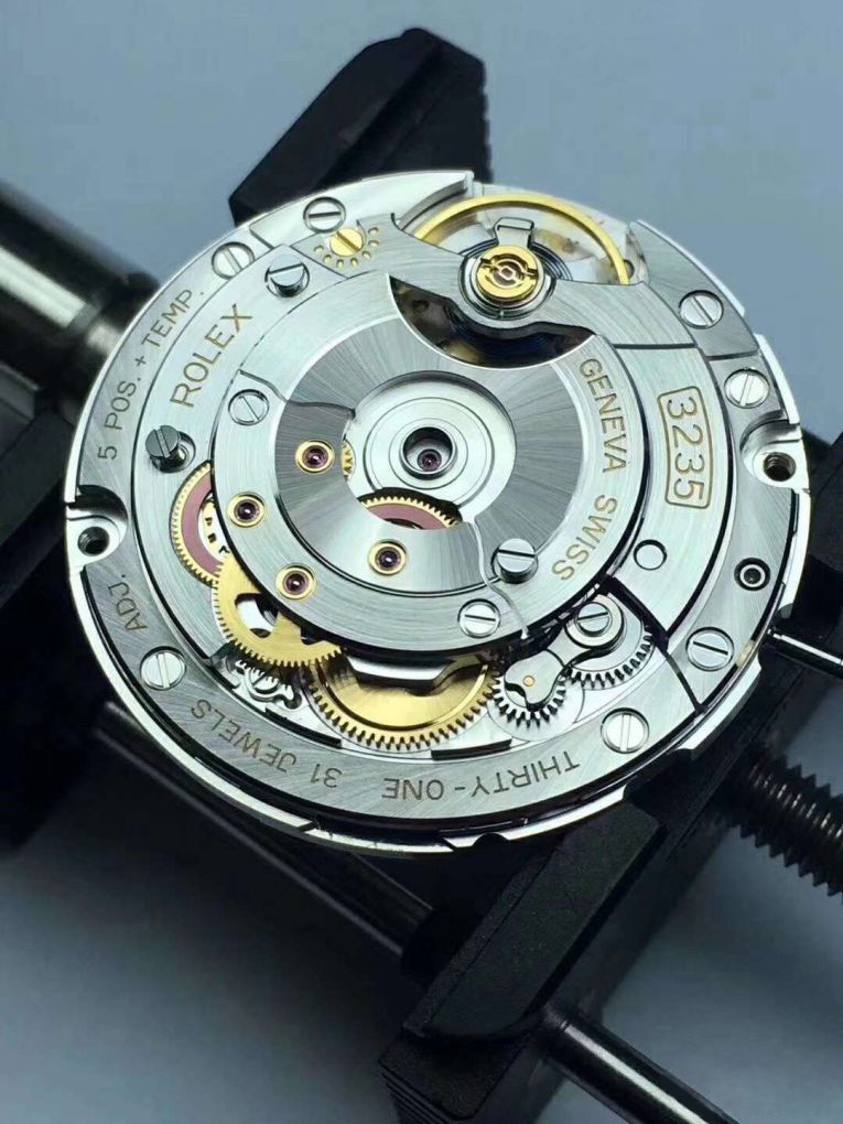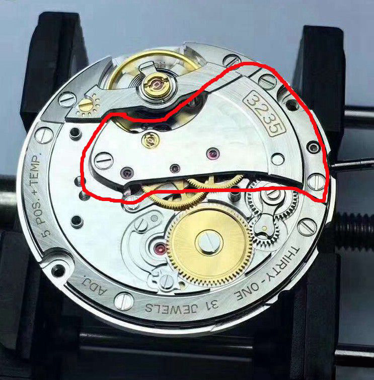 首先,3235机芯是一个全新的设计,继承了3135的优点,修正了3135的缺点,二枚机芯可共用部件几乎为零。原先的3135属于偏置二轮的轮系结构,3235改成中心二轮结构,轮系排布完全不同。据我上手测试,摆轮的升角也相去很多,所以多数校表仪默认的升角下测出的满弦摆幅显示在260°-275°,实际当然不会这么低。动储时间达到了70小时,不过劳没有一味简单地从条盒发条做文章,还以自身消耗动能更少、传动效能更高的轮系、新的擒纵设计为重要的辅助条件。在我的DateJust 126333满链后静置60小时后3235机芯动储仅剩七分之一时,校表仪检测发现它仍能有非常优异的摆幅落差表现,误差也变化微小,实在牛逼。劳这一套内功下来,在我之前写的主题帖里都有体现,有兴趣的朋友可以翻翻。