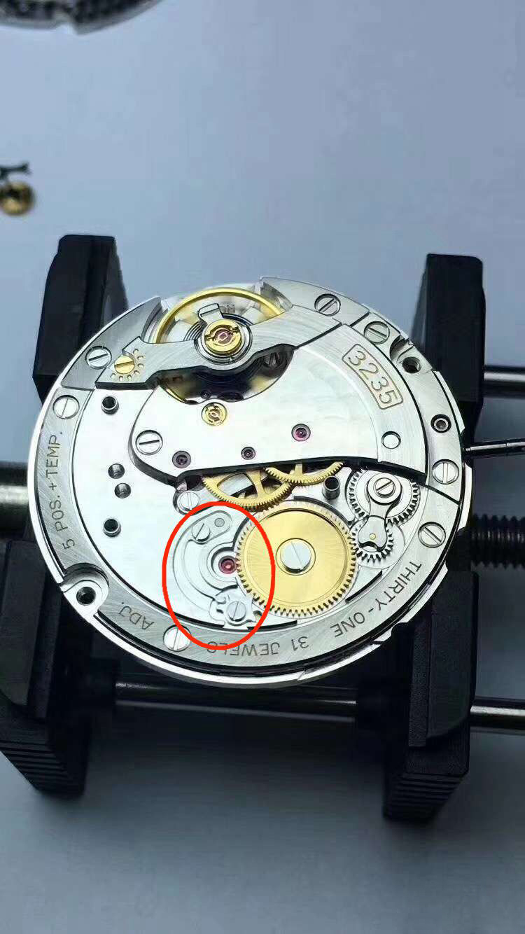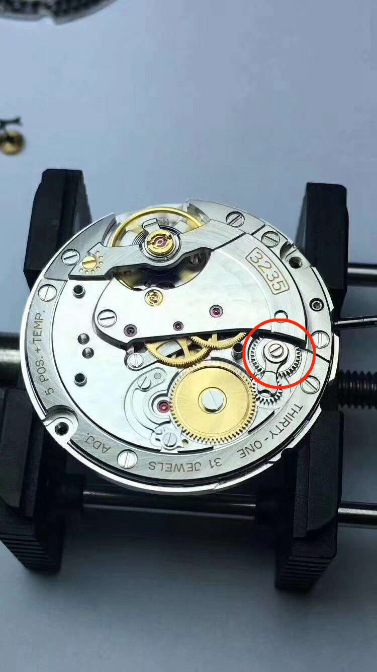 在这里我要埋下个伏笔,因为手里还没有这个3235红轮彻底分解的照片,对它的设计的合理性我们还有待进一步研究。