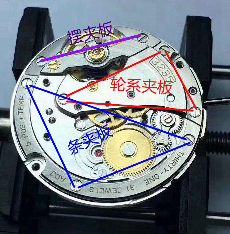 3235夹板大量用了弧线拉丝,这种打磨是最不挂尘的,包括劳在内以及劳之上的顶级表们,轮系打磨也全是拉丝。除了增强质感取悦眼睛,齿轮也更不容易挂尘,因尘粒而卡齿的概率减低。虽然观察一些个例不能说明问题,但是从统计学上来讲,是有正面意义的。另外不要说手表密封见不到尘粒,因为无论怀表时代还是手表时代,润滑油老化后都会结胶变成颗粒在机芯内“四处游荡”,那玩意才是卡齿轮专业户。尤其是用油喜欢海量的ETA。我手里业余拿来拆装练手的MIDO,就出现过齿轮卡住的状况。