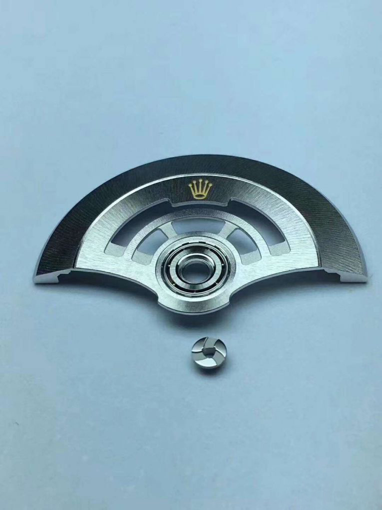 滚珠自动陀大家都知道了,硕大的滚珠轴承,搭配硕大的固定螺钉,看上去那螺钉承受3N*m的紧固扭矩都没问题,坚固靠谱,妈妈再也不用担心我蹭陀。。。而且3235的自动陀是整体CNC成型出来的,不再是3135当初的分体+铆钉,看上去也更精致。