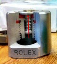 在这个过程中,人体所处的环境中的压力慢慢的减小,而手表内因为还有之前渗入的氦气所以一时间没有迅速排出的能力,所以在周围气压减小后手表内的压力相对周围就比较大了,这种时候手表内的压力就有可能顶翻手表的镜片或者造成一些破坏性的损失。由此而来,就有了排氦阀这种东西应势而生,这里提一句,排氦阀是劳力士与1967年发明的