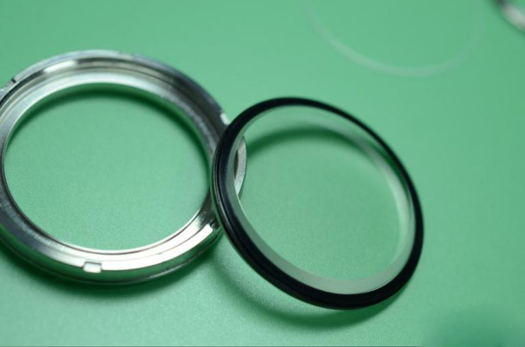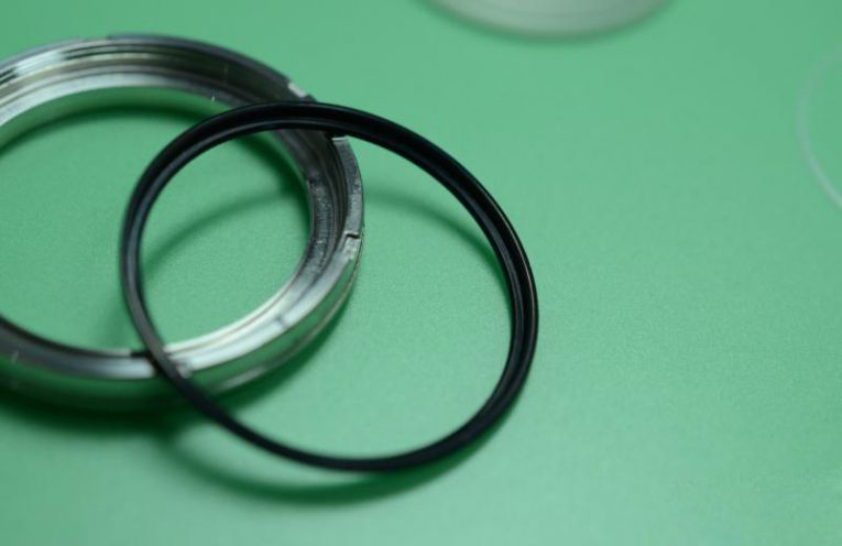精工在镜片与表壳的连接处下的功夫很大,相对于瑞士表的压入式玻璃来说,精工千米罐头使用的玻璃装载方式显得非常复杂。玻璃并非是使用机器压入表壳内的,而是使用上下两个螺纹钢圈将玻璃牢牢锁在中间,再将钢圈旋入表壳,这种环环相扣的结构非常结实。锁紧玻璃的两个钢圈中为了保护玻璃不被钢圈压坏使用了防水圈作为垫片。而且因为两个钢圈使用的是上、下、侧三个方位包围的方式来锁紧玻璃的,所以这里使用的垫片也必须能够包裹着三个方位,所以我们就看到了精工非常经典的“L”形防水圈,