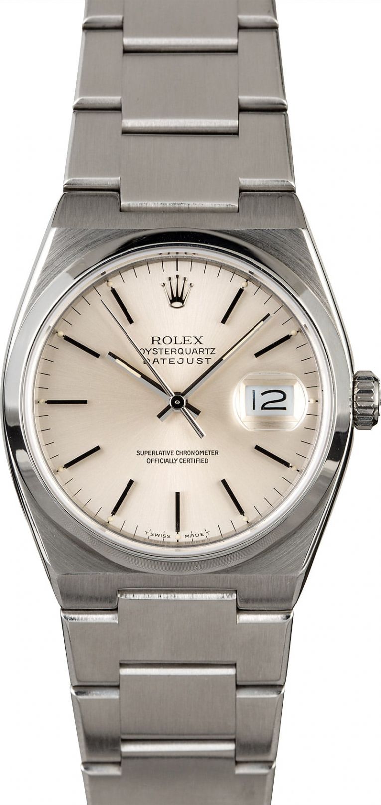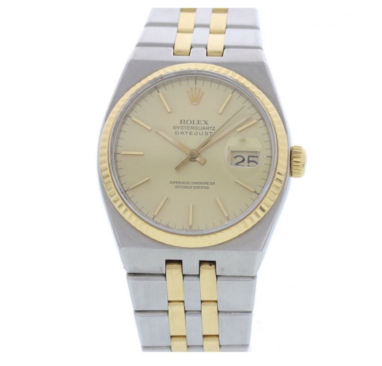 劳力士的石英表称为Oysterquartz,蚝式石英表,简称OQ,在1977年开始生产发行,说到其开端,就得从石英风暴开始,瑞士表行业遭到冲击,瑞士20家钟表行业公司凑在一起,成立CEH中心共同开发石英机芯。1966年推出Beta1,1967年改进为Beta2,1968年推出量产版本的Beta21,在市场售卖,许多大品牌相继采用并推出了石英款。