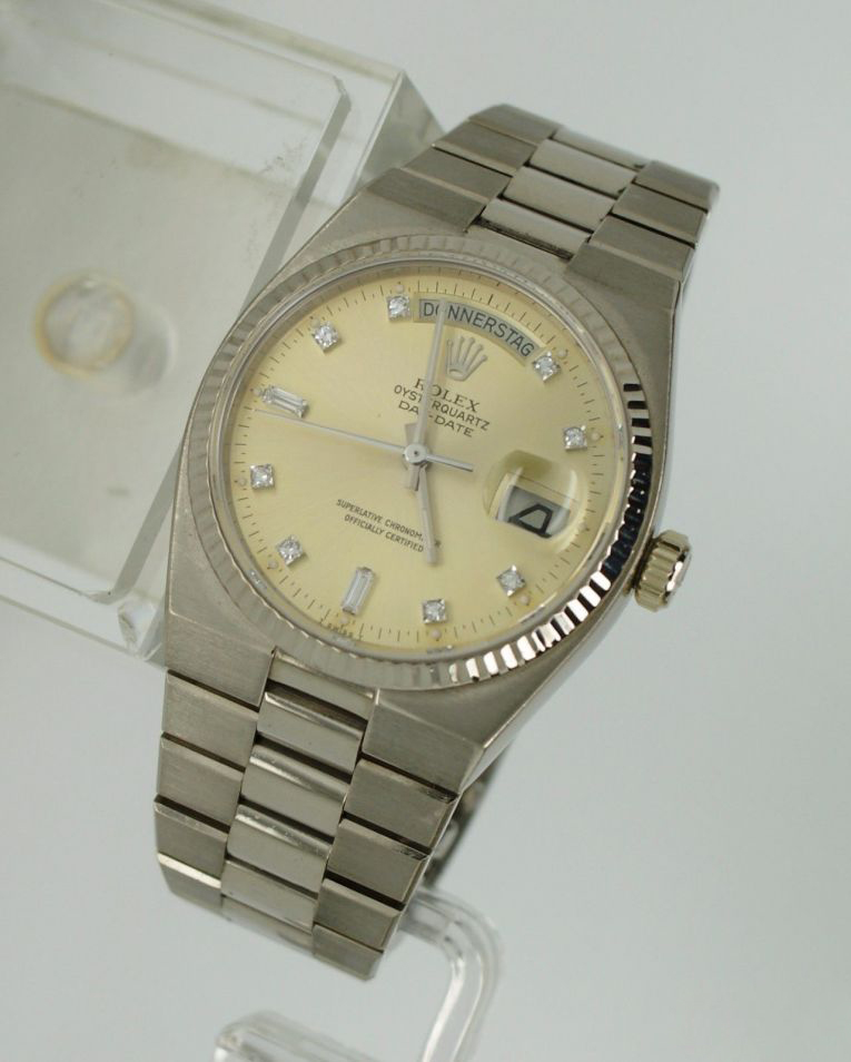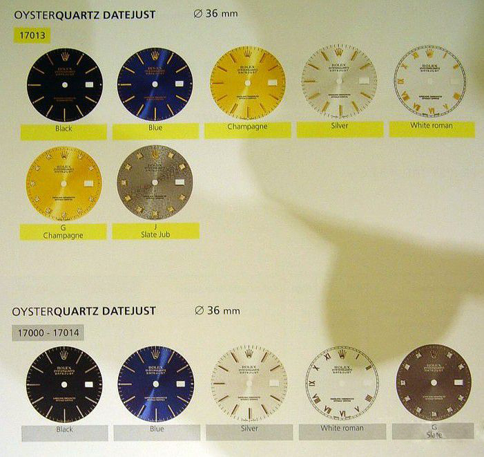 在1977到2002年间,OQ共有5大种型号,包括三种Datejust和两种Daydate,根据表盘表带可进一步细分,间后面图。