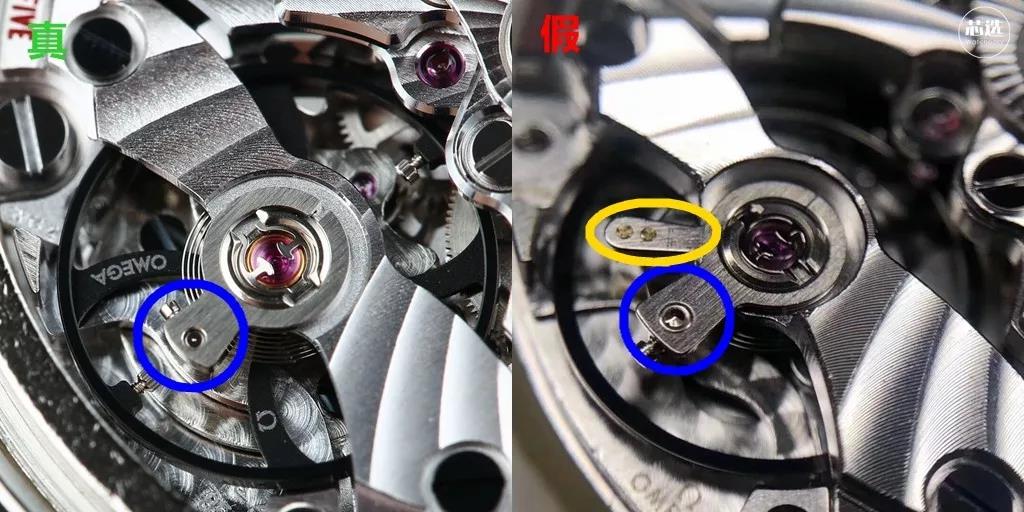 之前,依靠这两个鉴别点,普通的表友也能快速、准确地区分绝大部分的假欧米茄自产同轴机芯版本的手表。
