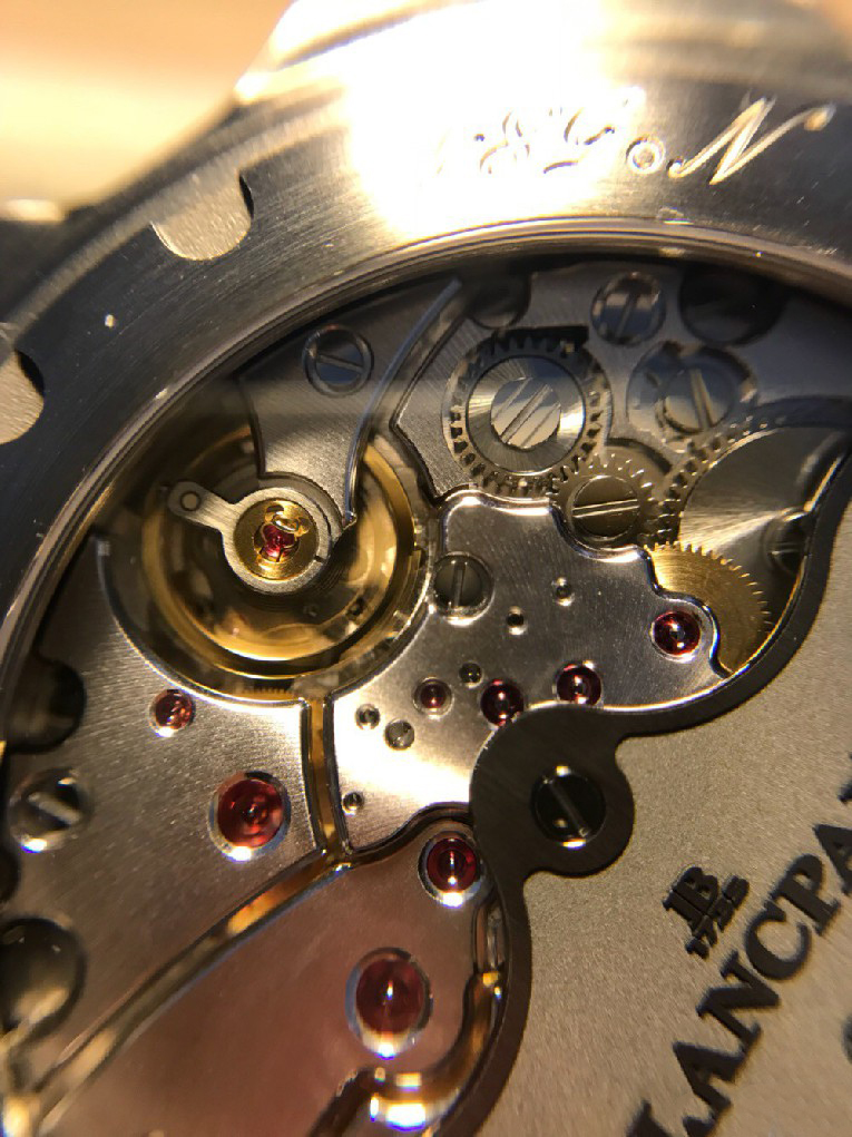 提到宝珀就不能不说说他们家的机芯,自从将著名的FP机芯厂改名宝珀机芯厂完全并入宝珀之后,宝珀的机芯研发实力在世界上都是首屈一指的。此款的1315机芯由宝珀机芯厂研发三年推出,专为五十噚设计专供五十噚使用,可见优荣之盛。