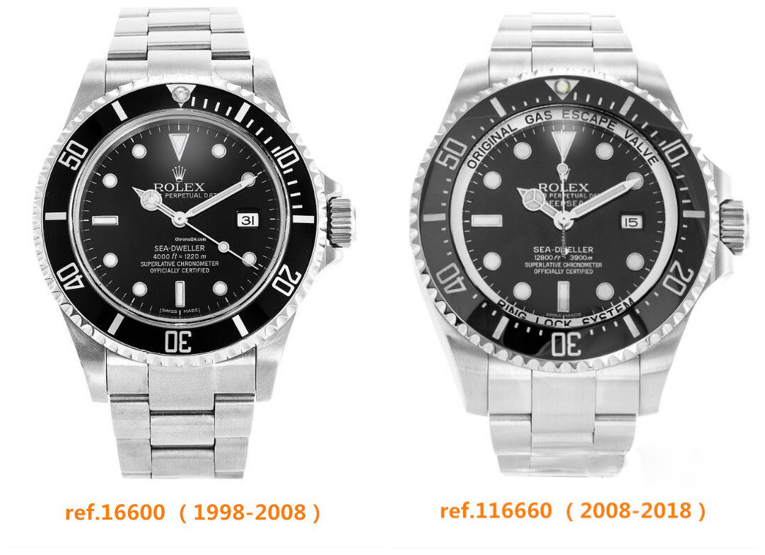 在1988年后的16600则是采用3135机芯替代16660,除了机芯更新之外和使用新904L钢材外,可以说老海使王者形象从1978到2008年才结束,风骚了40年的海使不仅拥有坚固的外表,更高的防水级别,同时也是引领深潜手表真正走向大众市场,形成新的潮流旗帜标杆