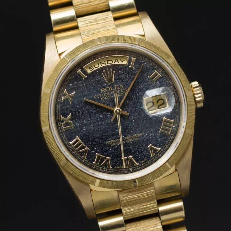 劳力士这个丧心病狂的公司能把任何东西装到表壳里啊,上面是几枚木化石石化石面盘的Ref.18038
