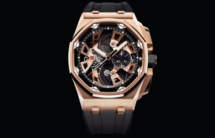 全新皇家橡树离岸型陀飞轮计时码表采用全新表盘结构设计,呈现出现代建筑美感,不仅秉承了品牌的传统风格,同时展现出爱彼通过离岸型腕表的工艺美学所传达的创新理念。
