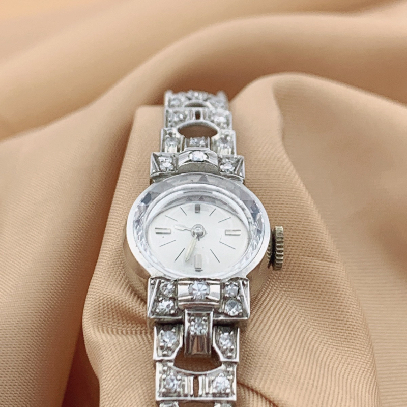 产品简介:PT铂金满钻机械珠宝女表,整表重27克左右,钻石约80分,手腕围度有2档可以调节,适合腕周160-175mm,走时准确,表背有一个鹰头印记,1920年代的珠宝女表,当时的女表大都是私人定制,孤品,就卖个材料钱!