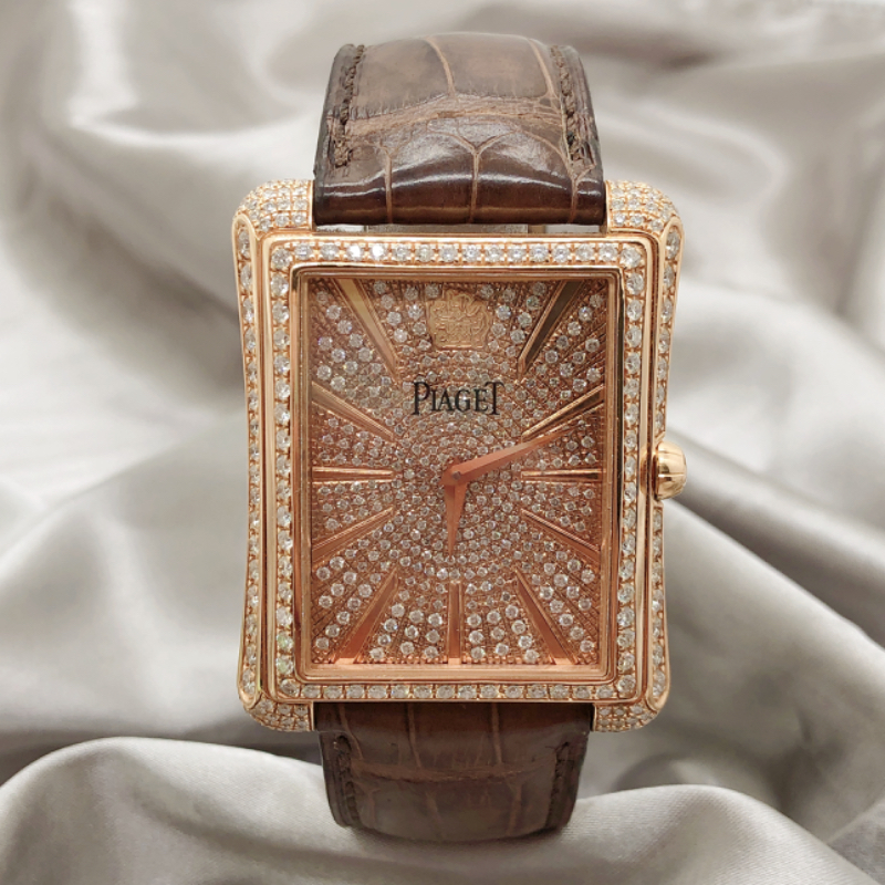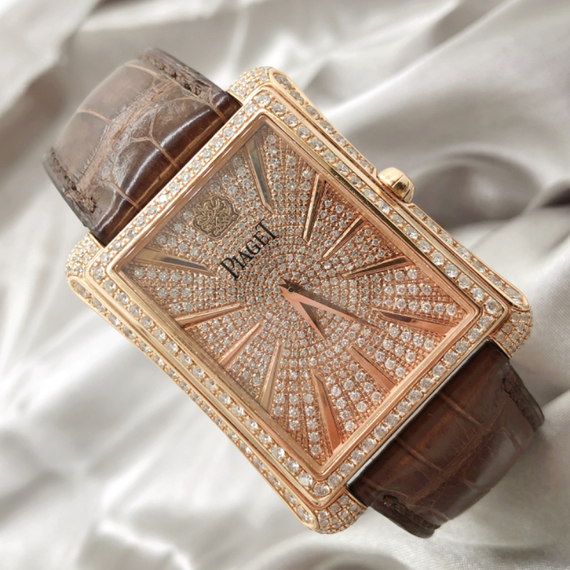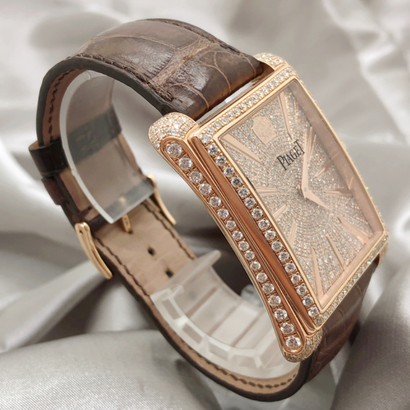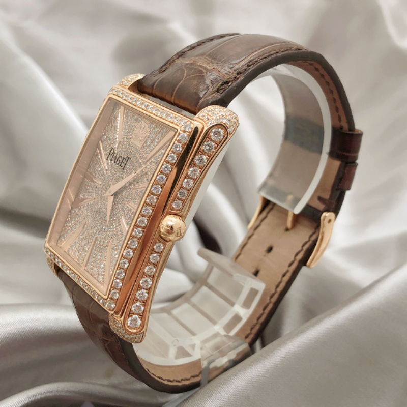 产品简介:PIAGET/伯爵BLACK -TIE系列G0A32121升级G0A33076,表径36x46毫米,18k玫瑰金,自动机械男表,银灰表盘,动力储备44小时,后镶满天星,参考公价645000,二手95新单表,整表95克左右,相当于买黄金送表!
