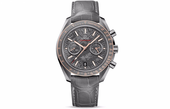 腕表点评:欧米茄超霸系列中独具特色的一款腕表,其创意灵感源自深邃的外太空。直径44.25毫米的表壳由一块完整的陶瓷制作而成,陨石表盘采用一块远古时期的外星陨石制成,经过酸浸蚀刻处理,在每一枚腕表上呈现独具一格的纹理图案。3点位置设60分钟和12小时计时小表盘,9点位置设小秒针小表盘。读时清晰明了。搭载欧米茄9300自动上链同轴计时机芯,提供约为60小时的动力储存。