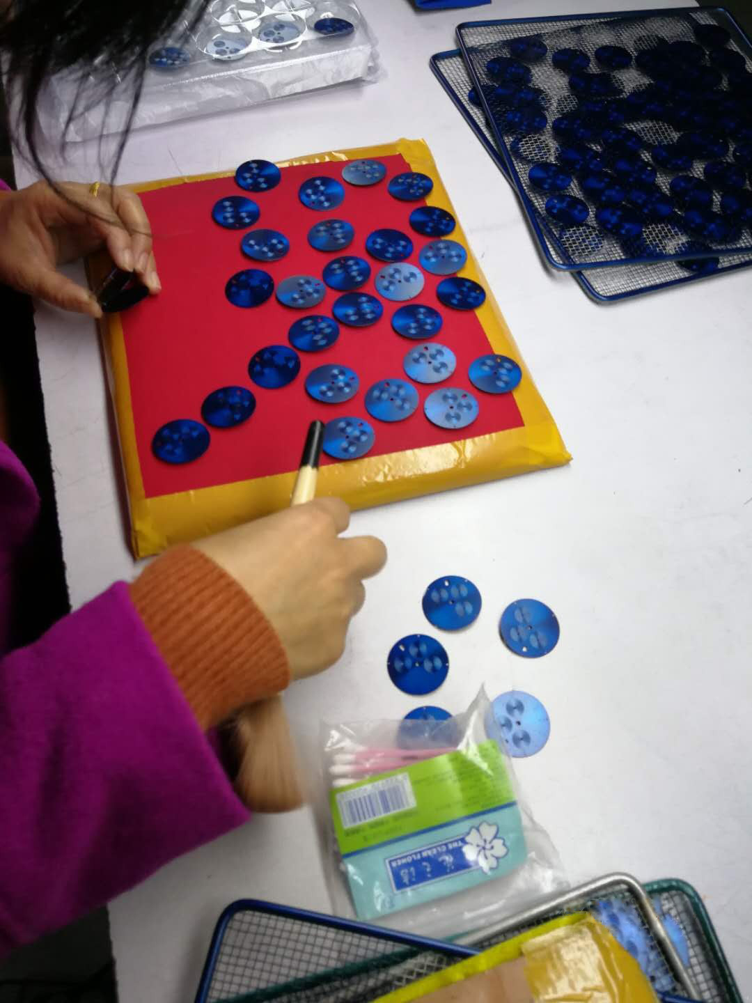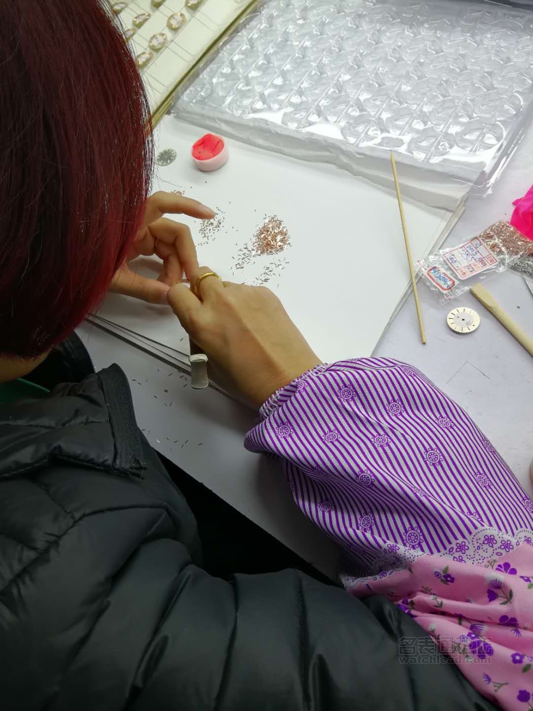 着重说明下字钉,字钉在整个字面上是最难最重要的一个环节,工艺要求最高。举例说明我那款字钉要求夜光和字钉一样平整,长方形字钉尽量楞角分明些。工艺流程是先磨具做好字钉胚,然后在批平面。在进行电镀(电镀要求不能太薄防止有些没电上,也不能太厚电垒有倒角)填夜光是最难的要求和字钉平整要进行多次填充,调夜光要保证夜光的发光强度同时还要保证填充效果。