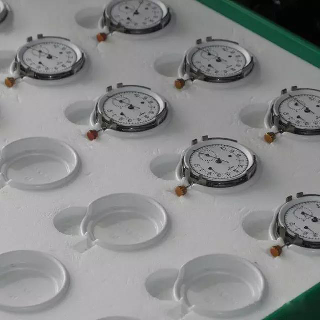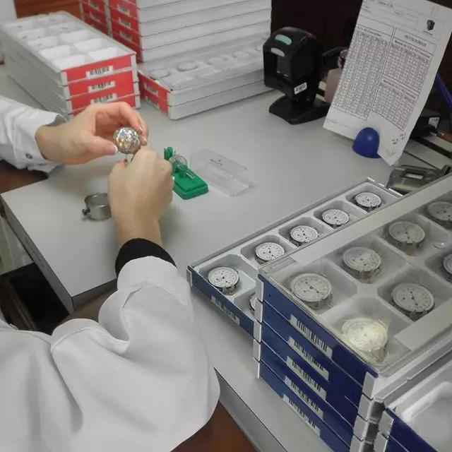 准备拿去进行天文台认证的劳力士迪通拿4130机芯,注意有两个看点。第一,都换用了特制的专用表盘,方便仪器读取指针数据。第二,进行天文台认证的机芯是没有自动陀的,是为了追求等时性的公平。劳力士把机芯厂安置在比尔市,还有一个原因是,比尔乃COSC天文台认证的创始区,在当地就有认证机构。