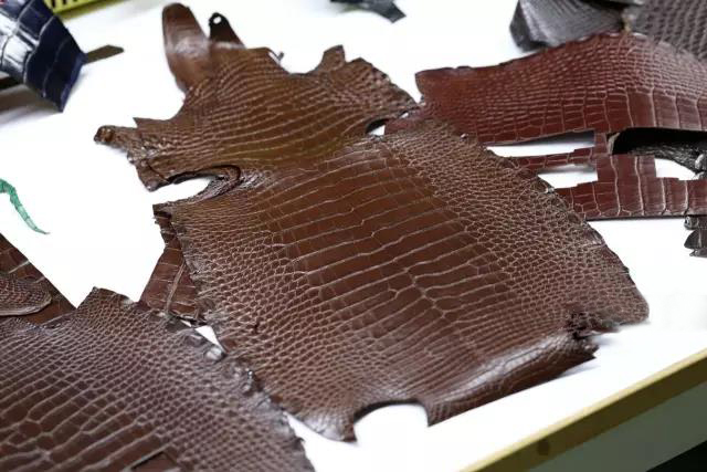 加工厂将鳄生皮加工成成品以后,就由各家皮具厂商挑选购买。像爱马仕这种巨头都会先挑走最好的一批,接着才会让大厂商、大代理商挑货,层层下放。所以那些小型的皮具工坊,只有给大代理商付更高的中介费用,才能拿到一级皮料。甚至有的时候还买不到,因为大代理商嫌弃订货量太少,卖着麻烦。