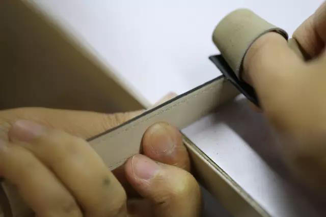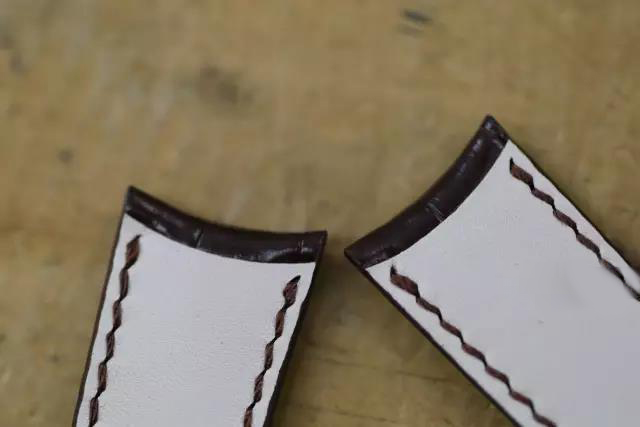 皮料虽然是用刀具切割而成,但边缘还是多多少少有毛边。所以为了整洁,同时也是增加防水性,表带的切割边缘都要包裹起来。