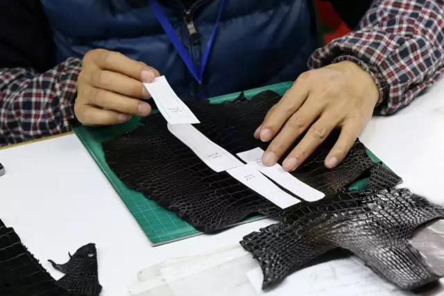 开料这样步骤是很容易被忽视的一个步骤,但却是非常重要的。因为鳄鱼都是自然生长,所以上面的纹路都是天然的,永远不可能有一模一样的。如果遇到,只能说明你买到人造假鳄鱼皮了。