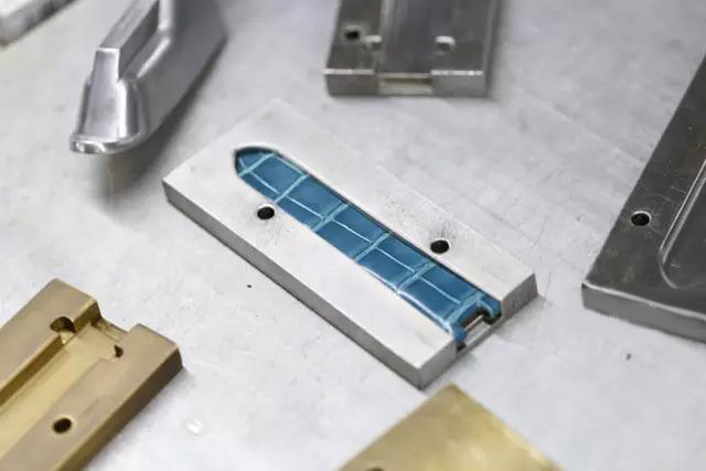 面皮、底皮、芯料、强力纤维准备好以后就用胶水进行粘合。有的表带为了塑造饱满、立体的外形还需要放入相应尺寸的特制模具中。模具采用不锈钢、黄铜制作,具有导热性。