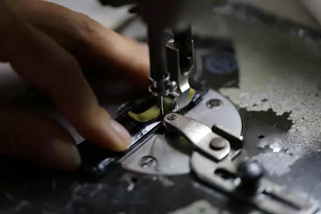 ‘马鞍针法’不仅耐用,而且好看。但它的缺点也很明显,就是生产耗时,缝制技术要求高。每次针线进入孔位的角度要保持一致,而且拉出来的时候施加的力量也得一致,否则就不能变成规则的波浪纹。