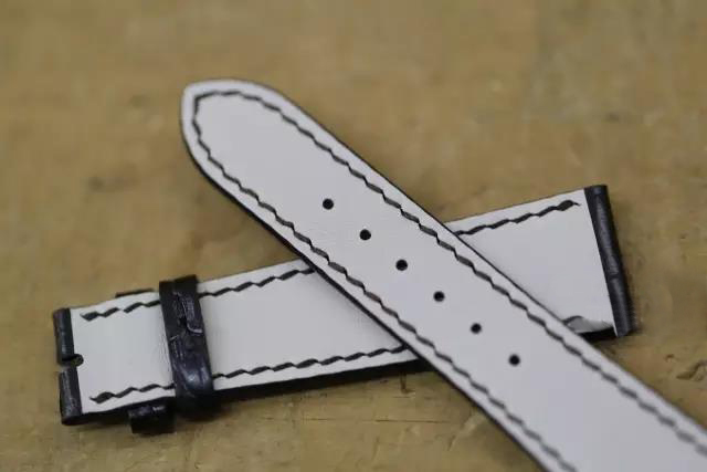 而缝线的手法又分为“机缝”和“手缝”。好表带,推崇的是‘Saddle stitch’手缝。‘Saddle stitch’又叫‘马鞍针法’。最早是制作马鞍的一种针法,爱马仕把这种针法推广至今,爱马仕依旧在采用这种古老的工艺制包。它的特点是同一孔洞会穿过两次针,这样即使其中一根线在后期使用中意外断裂,另外一根还能坚持。