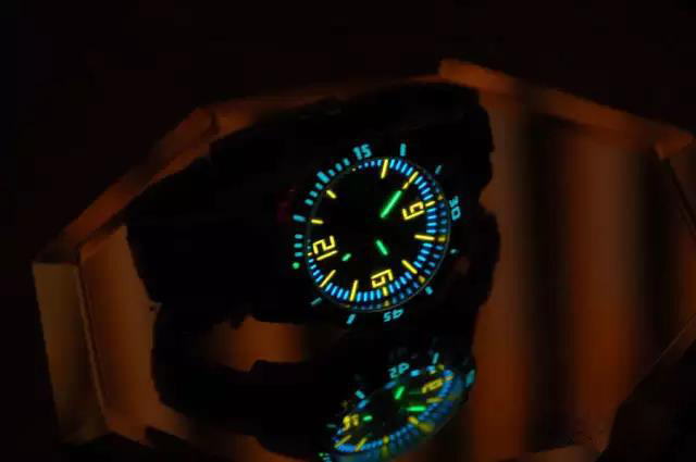 著名的宝珀五十噚古董潜水表的镭夜光历经几十年,现在使用辐射测量仪,辐射也已经爆表了,当初美军甚至在50鲟后盖上刻字“辐射物品,请送回就近军事基地”。因为镭的放射性的原因,所以镭夜光的使用被逐渐放弃。直到上个世界70年代初,镭发光化合物还广泛应用于钟表,航空仪表等行业。这个就是手表夜光具有辐射性的来源。