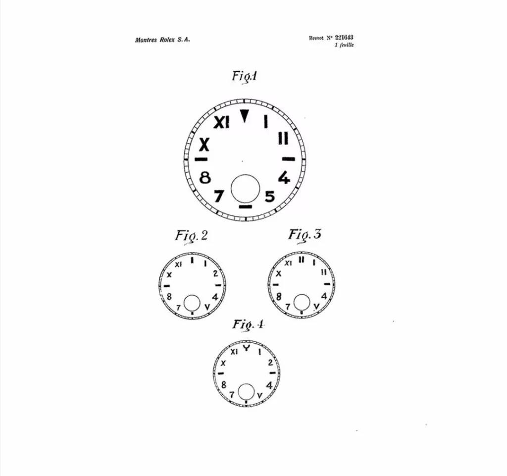 劳力士当时也很聪明,为了防止有人模仿这种混搭的表盘设计。所以在注册专利的时候特意注明这一发明并不局限于表盘上边是罗马数字、下边是阿拉伯数字。