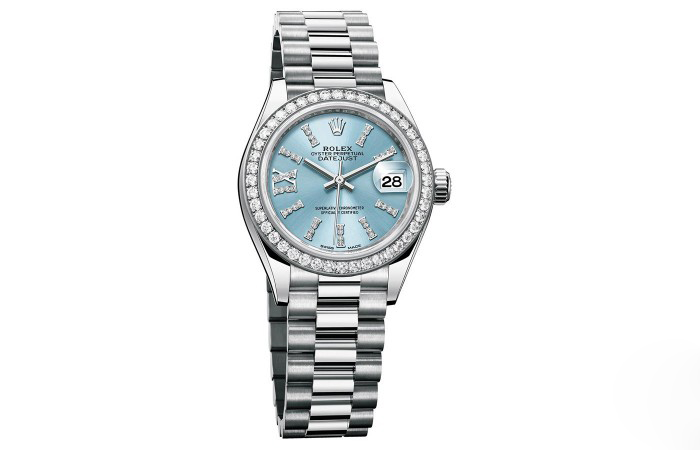 劳力士28毫米女装日志女表上率先使用了劳力士最新的硅游丝技术。