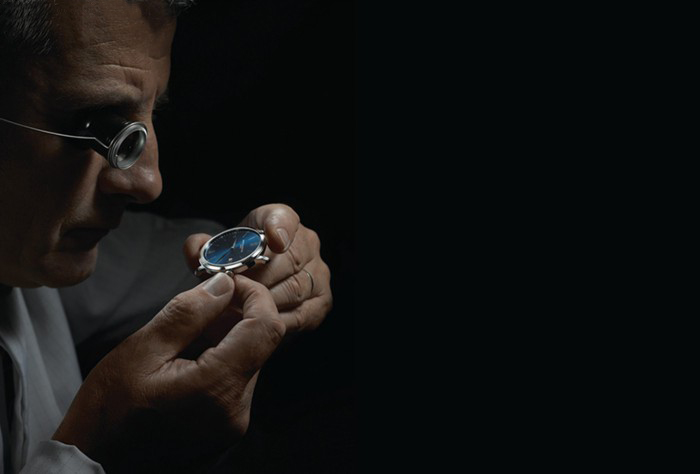其透明表背可一览机芯全貌,高质量机芯所配备的摆陀上装饰了钟表的传统精修润饰及品牌标识:希腊字母“phi”,象征完美视觉比例的“黄金分割”律。