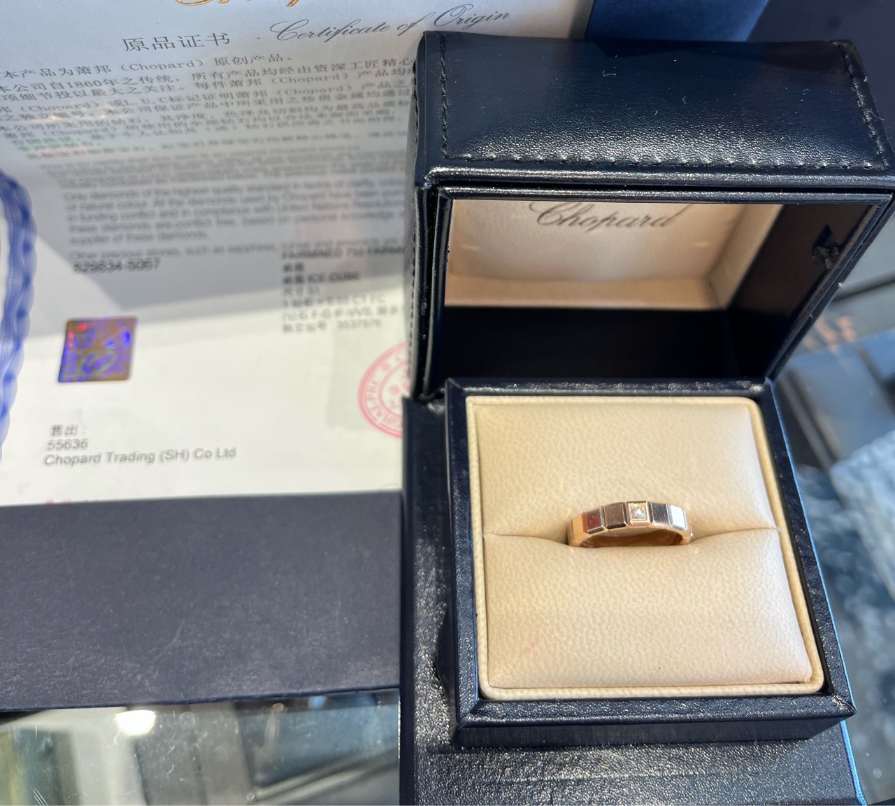 萧邦Chopard 玫瑰金方块单钻宽版戒指 51号 19年全套