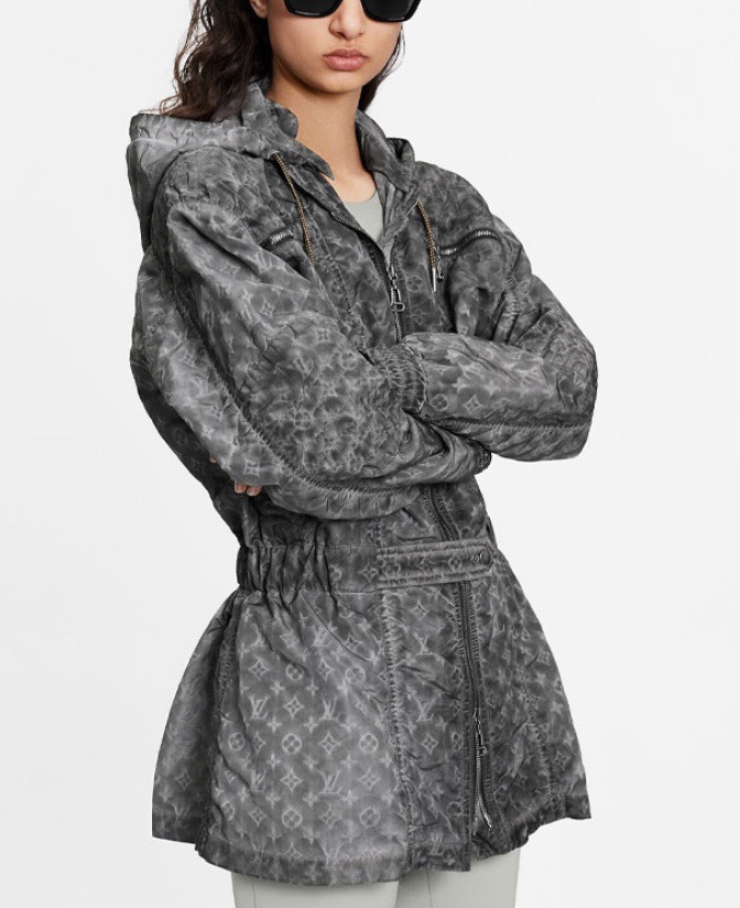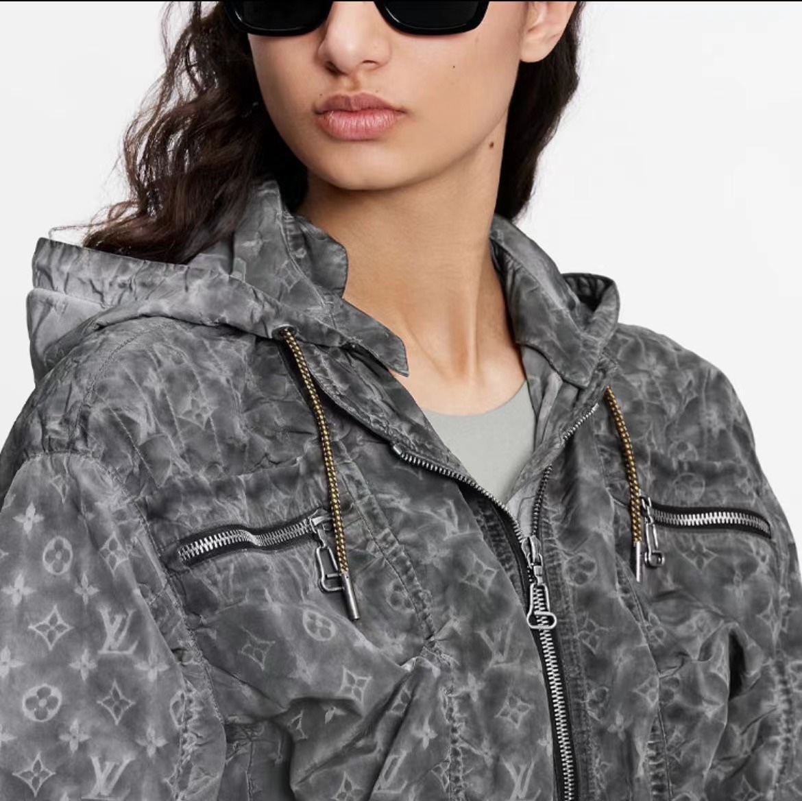 产品简介:Louis Vuitton 路易威登 老花满印Logo连帽冲锋衣 外套 女款 扎染做旧工艺搭配满印老花 36码 未使用带吊 y10942专柜3.15w