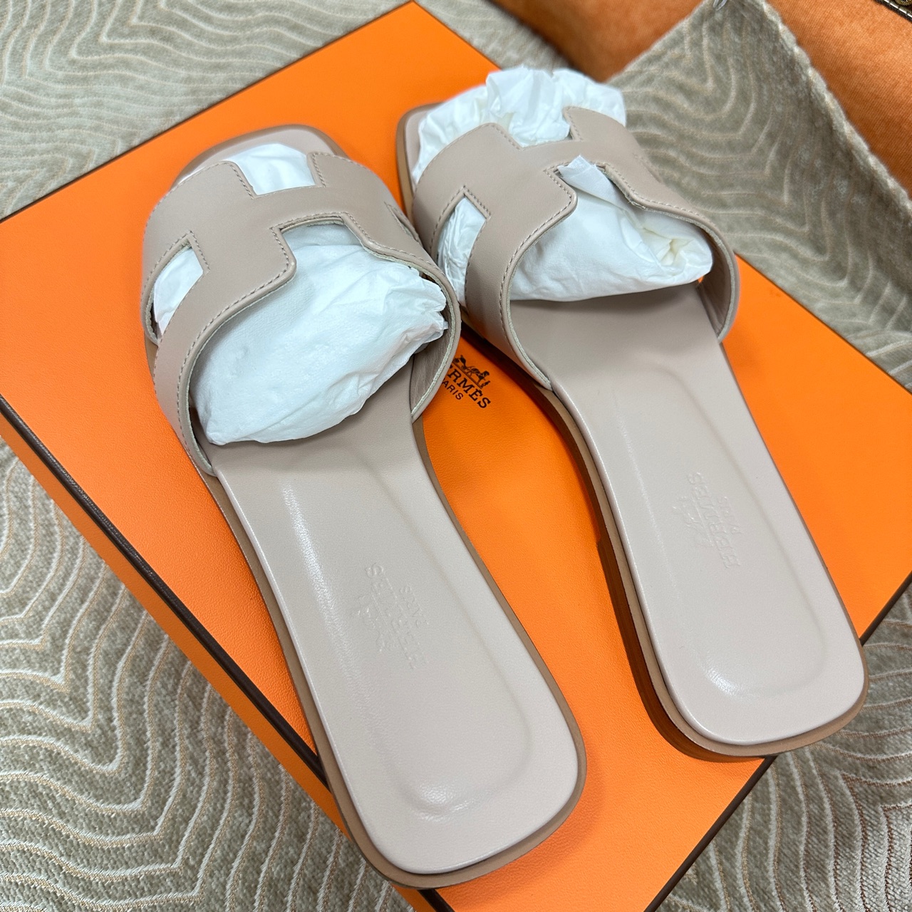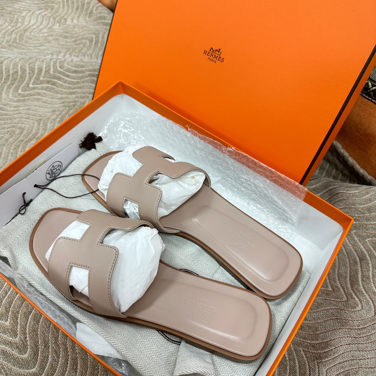 Hermes爱马仕H Oran藕粉色裸粉色拖鞋38码 BJQT018