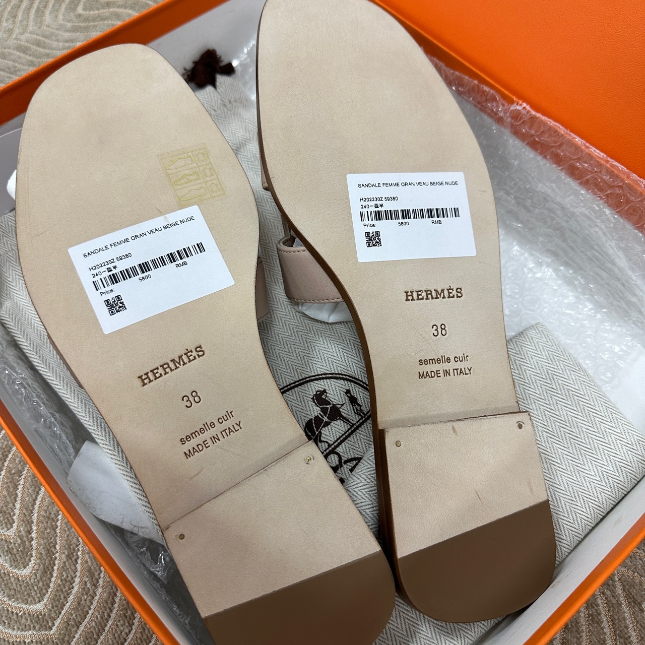 产品简介:Hermes爱马仕H Oran藕粉色裸粉色拖鞋38码 BJQT018