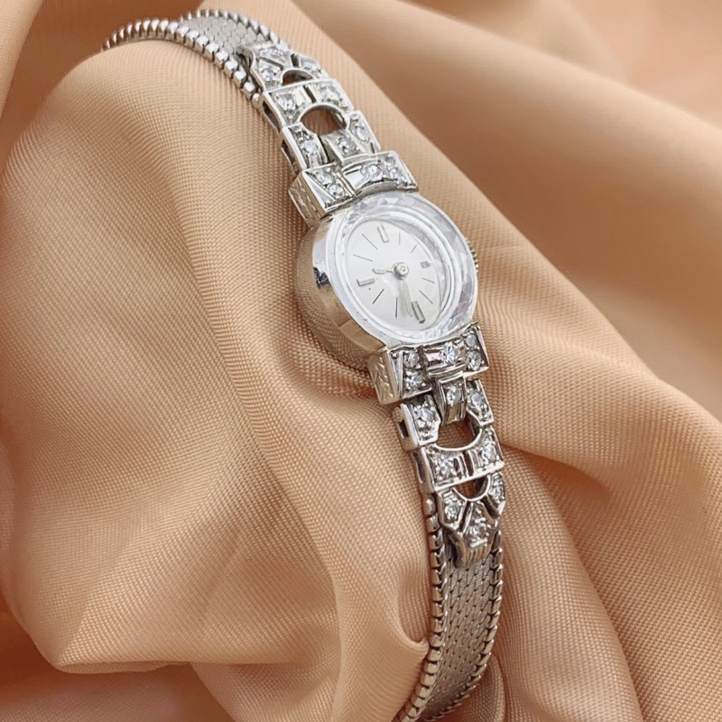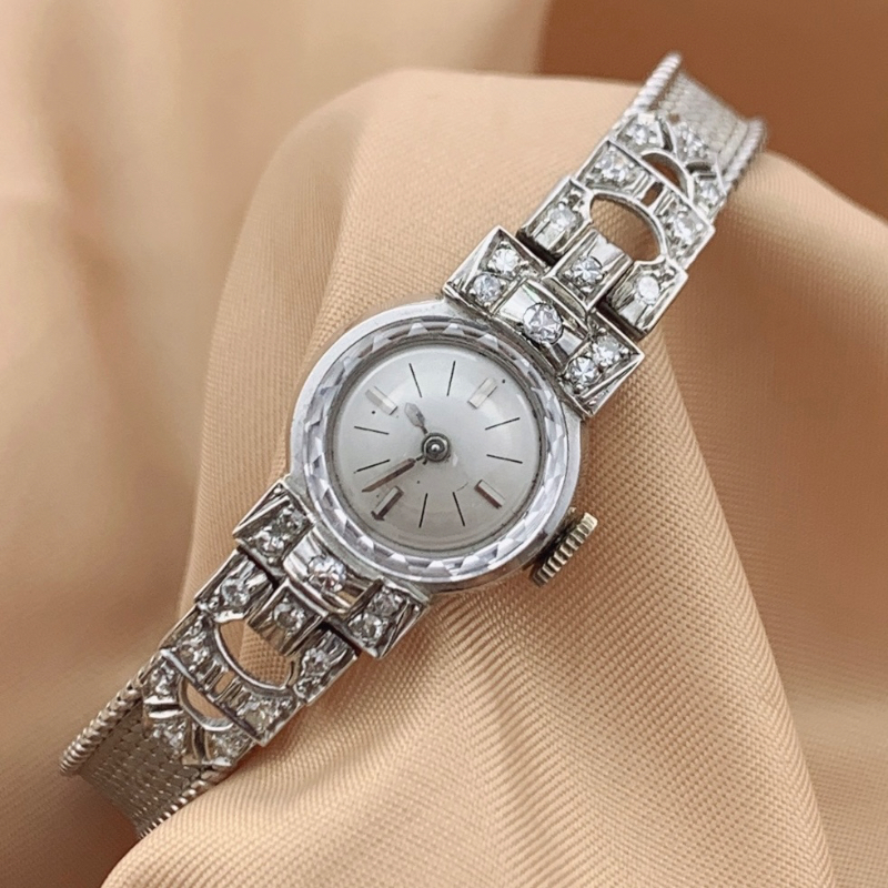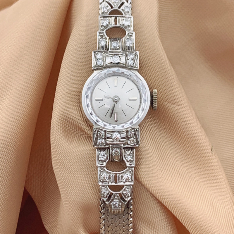 产品简介:PT铂金满钻机械珠宝女表,整表重27克左右,钻石约80分,手腕围度有2档可以调节,适合腕周160-175mm,走时准确,表背有一个鹰头印记,1920年代的珠宝女表,当时的女表大都是私人定制,孤品,就卖个材料钱!