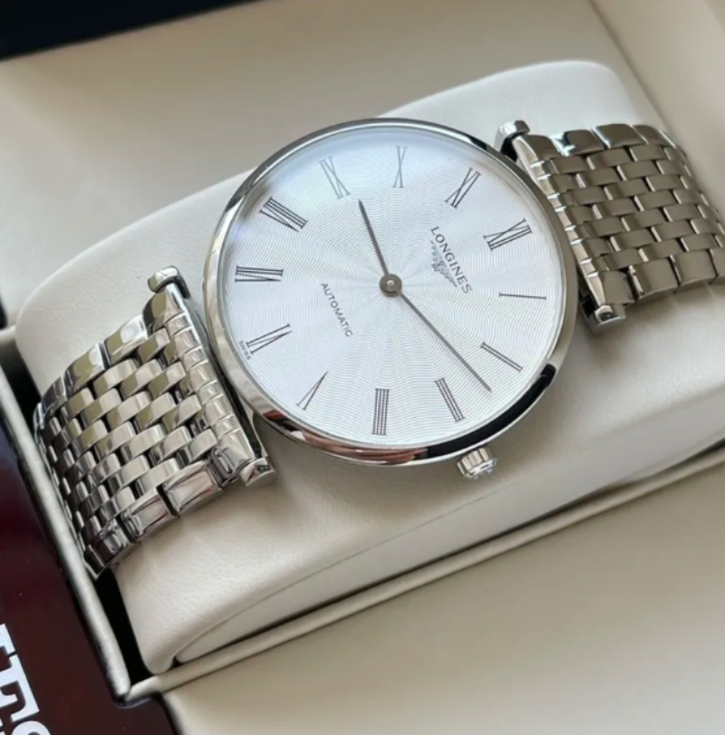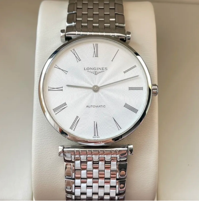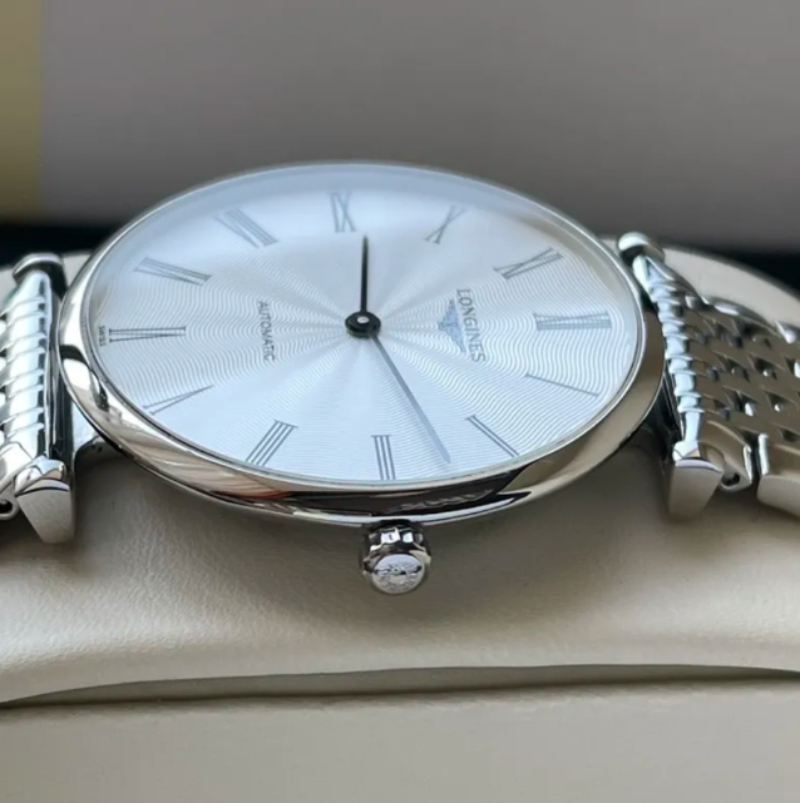 产品简介:LONGINES/浪琴优雅系列L4.908.4.71.6,表径36毫米,精钢,自动机械男表,银色表盘,三折式安全表扣和按压式开启装置,动力储备45小时