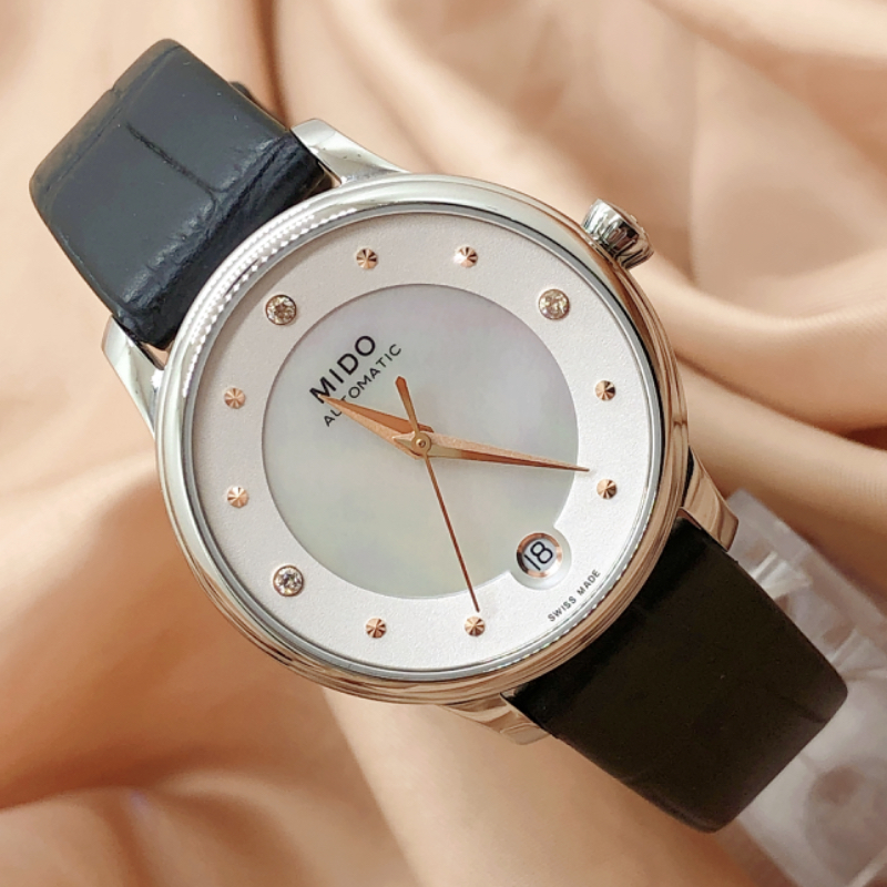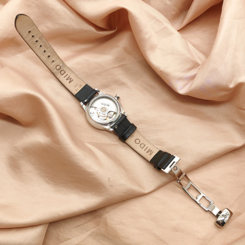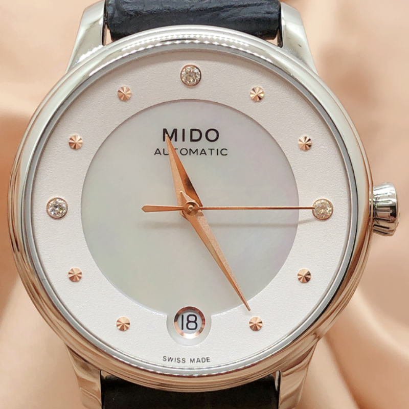 产品简介:MIDO/美度贝伦赛丽系列M039.207.16.106.00,表径33毫米,不锈钢,自动机械女表,白色表盘,折叠扣,动力储备80小时,日期显示,专柜售价¥8700,二手95新单表