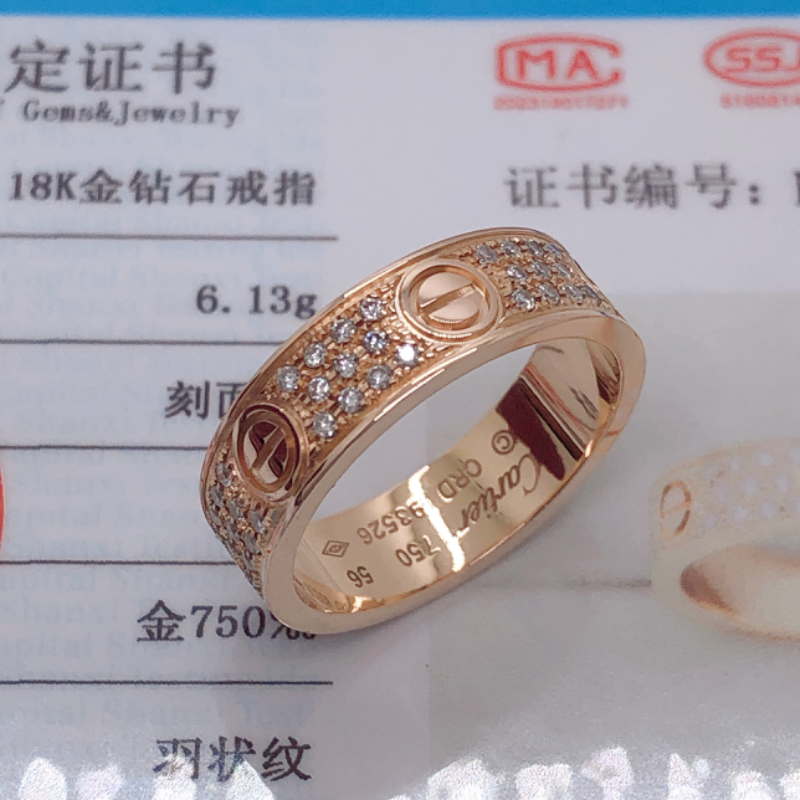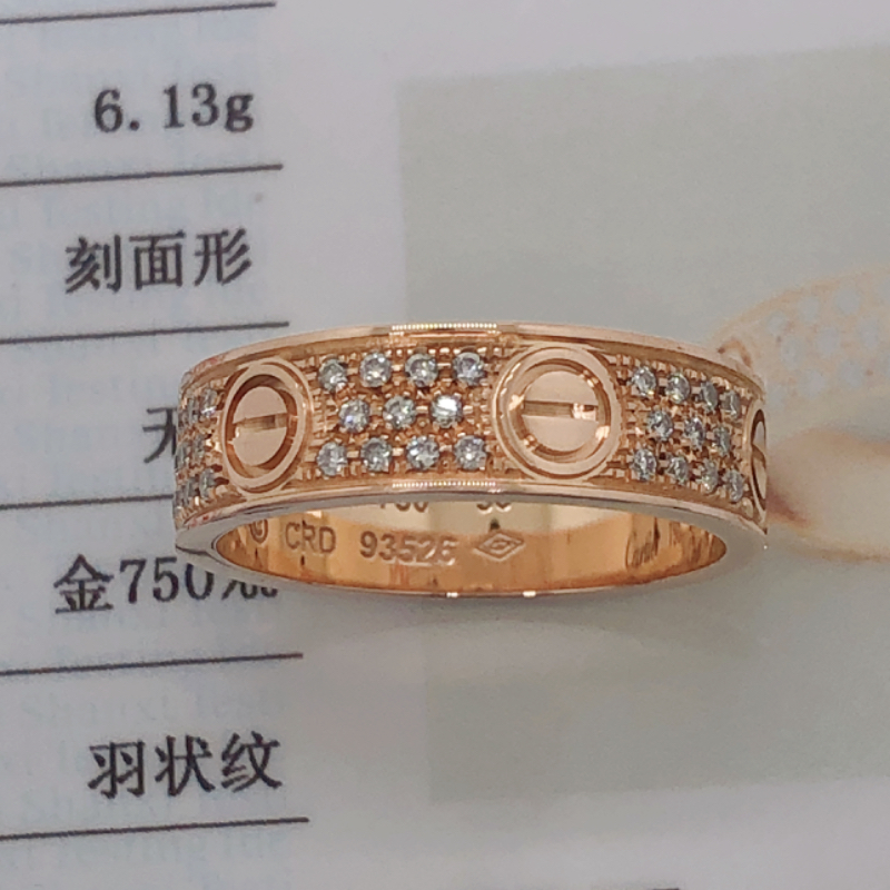 产品简介:卡地亚定制Love系列满天星满钻戒指,尺寸56,18K金,镶嵌天然真钻,重6.1克,99新
