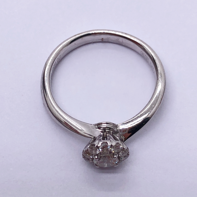 产品简介:18K白金钻石戒指,重2.33克,尺码45,适合手指细的女生,二手95新,好价!