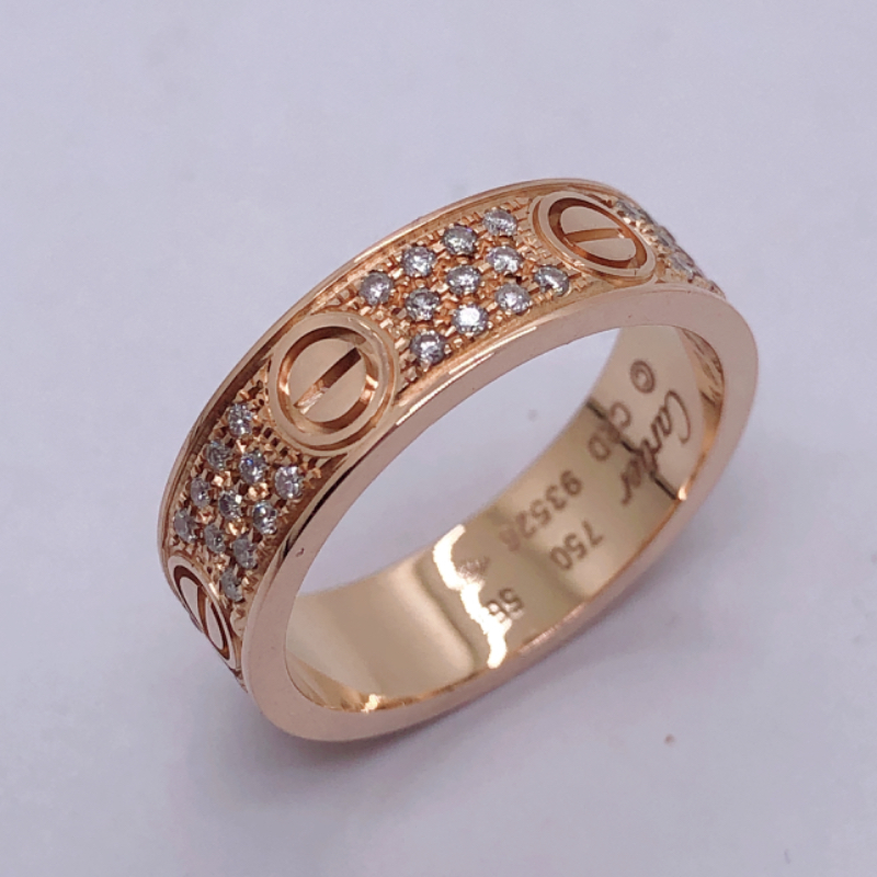 产品简介:卡地亚定制Love系列宽版满天星满钻戒指,尺寸56,18K金,镶嵌天然真钻,重6.1克,99新