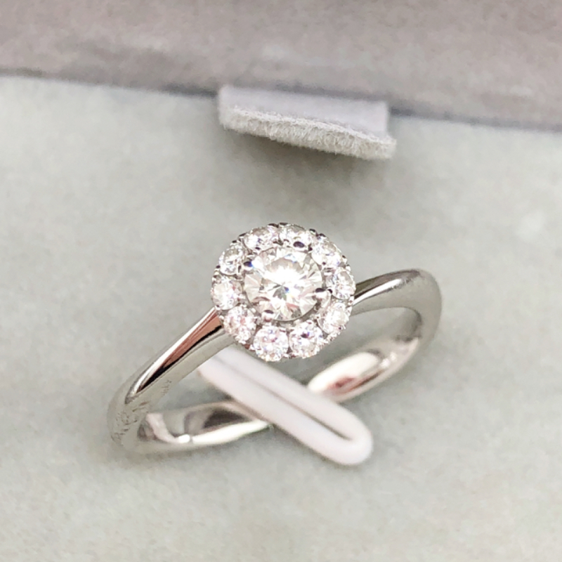 产品简介:18K白金钻石戒指,重2.33克,尺码45,适合手指细的女生,二手95新,好价!